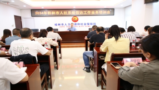 为深入贯彻落实《信访工作条例》,扎实推进信访工作法治化,提升全市人社系统信访工作干部业务能力,近日,桂林市人力资源和社会保障局组织开展全市人社系统信访工作业务培训会。局党组成员魏天修同志出席会议,参加会议的人员有各县(市、区)人力资源和社会保障局、局属各单位、局机关相关科室负责信访工作的干部。