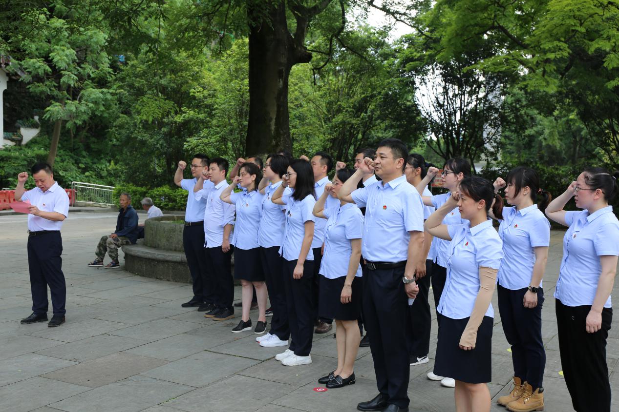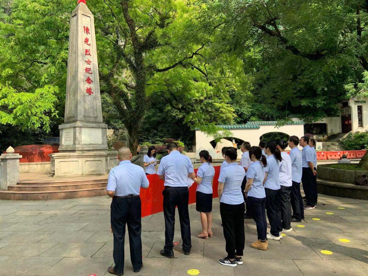 五月的天气,风和日丽。七星公园内,普陀山西麓,陈光烈士纪念碑巍峨耸立。纪念碑前,桂林市公共就业创业服务中心全体党员干部职工肃然伫立,在中心党总支书记鲁和平同志的带领下,重温入党誓词,重问入党初心。