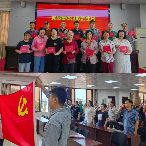 当天,还开展了集体过政治生日、重温入党誓词活动。活动中,离退休支部书记为老党员们送上政治生日贺卡,带领老党员们重温入党誓词。面对鲜红的党旗,举起右拳庄严宣誓,铮铮誓言,每一个字都表达着退休党员干部“不忘初心、牢记使命”永远跟党走的坚定决心。