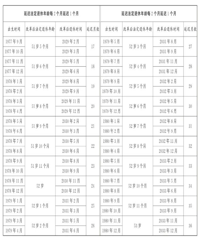 3.原法定退休年龄五十周岁的女职工延迟法定退休年龄对照表