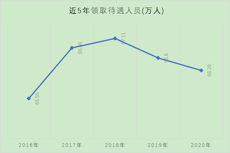 (3)确保符合条件的城乡居民养老保险领取待遇人员按时、足额发放养老待遇,发放率为100%。其中,2016年为65.55万人,2017年为66.86万人,2018年为67.11万人,2019年为66.60万人,2020年1至10月为66.28万人。