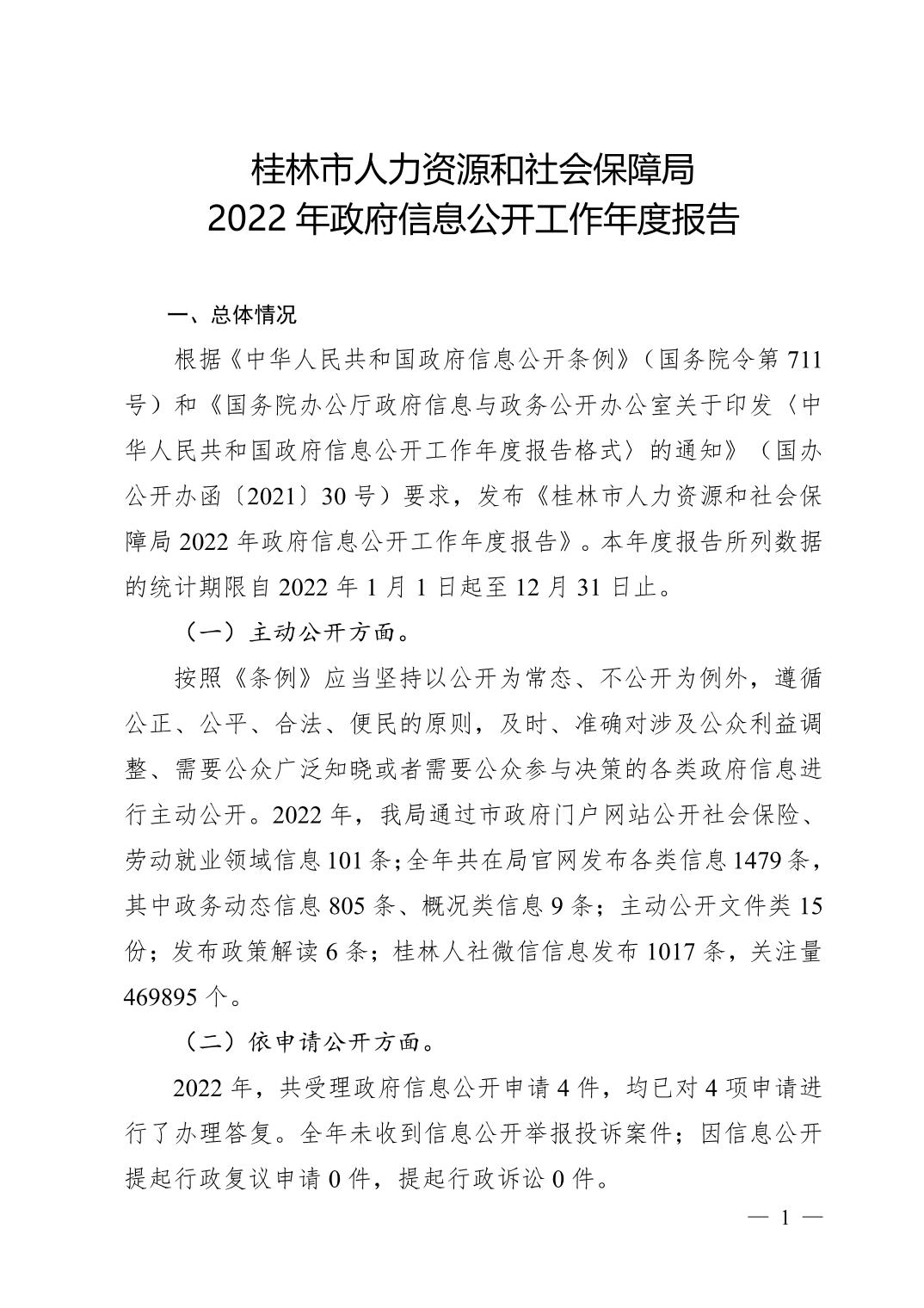 桂林市人力资源和社会保障局2022年政府信息公开工作年度报告