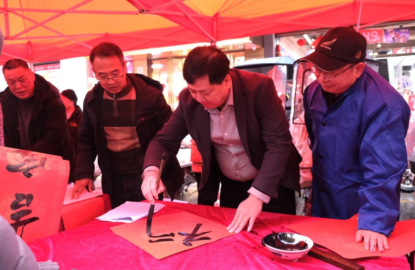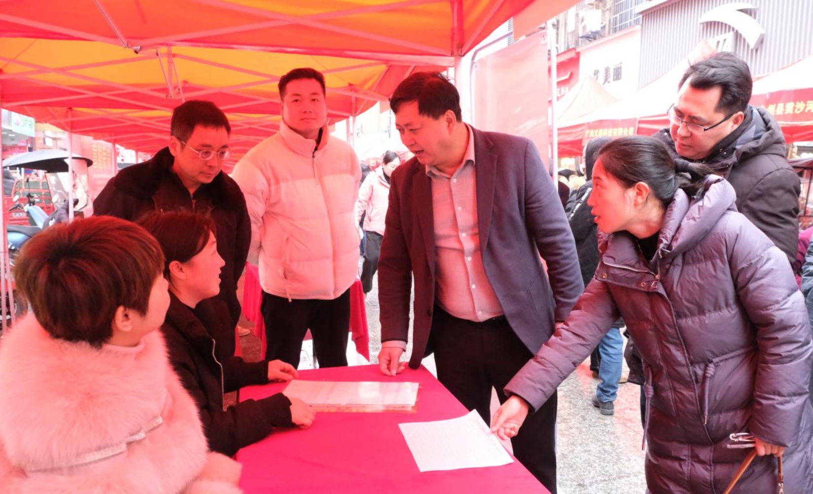 当天,时近年关,街上人群摩肩接踵,该县人社部门安排书法写手为群众送“福”、送春联,同时提供政策解读、岗位推荐、技能培训报名等“一站式”服务。