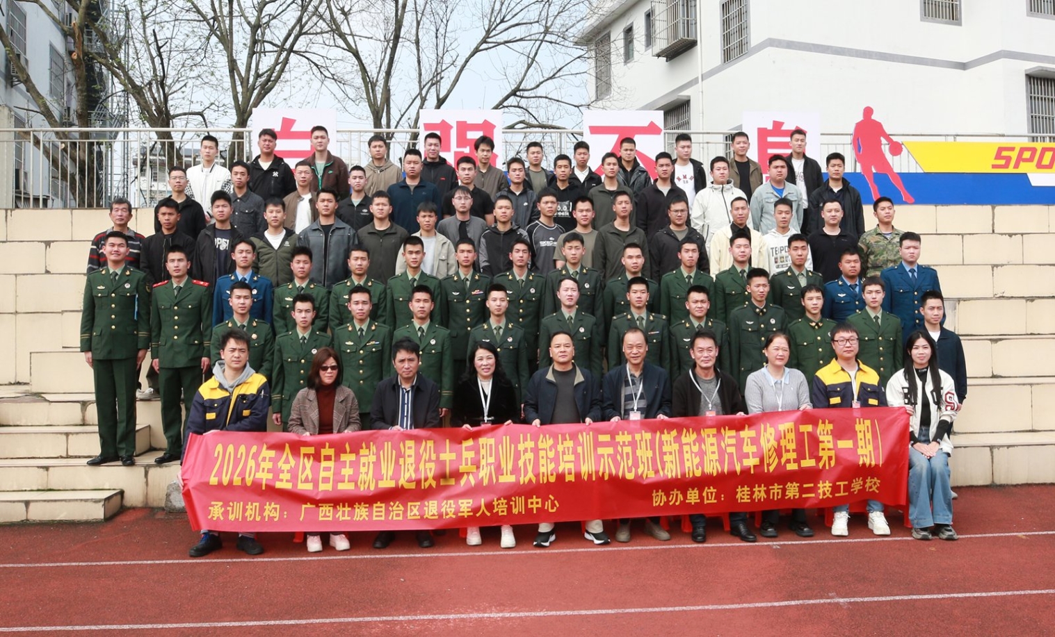 3月30日,2026年全区自主就业退役士兵职业技能培训示范班在桂林市第二技工学校隆重开班。本次培训由自治区退役军人事务厅、桂林市退役军人事务局主办,自治区退役军人培训中心承训,桂林市第二技工学校精心协办,以“训岗融合,直通就业”为核心,聚焦退役士兵技能提升与就业安置核心需求,用暖心拥军与专业服务彰显公办技工院校的责任与担当。
