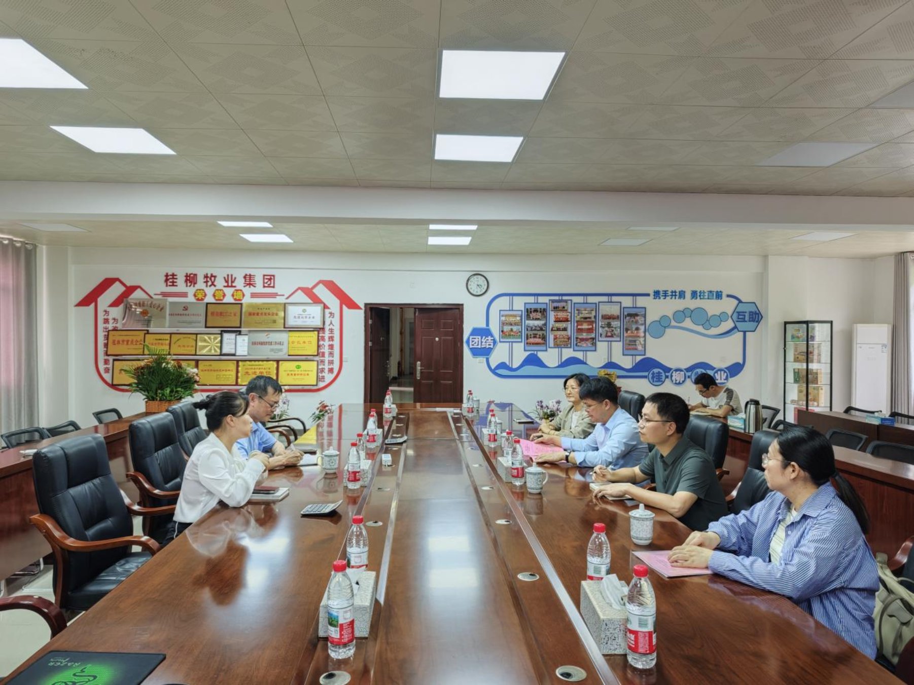 在广西桂柳牧业集团有限公司,韦普健一行与企业负责人座谈,对该公司荣获“全国就业与社会保障先进民营企业”称号表示祝贺。韦普健指出,此次获誉是对企业长期践行社会责任、稳岗扩岗促就业的充分肯定。希望桂柳牧业集团充分发挥示范引领作用,进一步扩大生产规模,积极吸纳更多本地劳动力就近就业,为桂林经济社会高质量发展贡献民企力量。