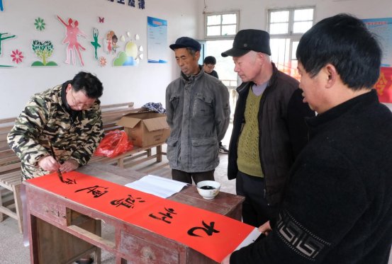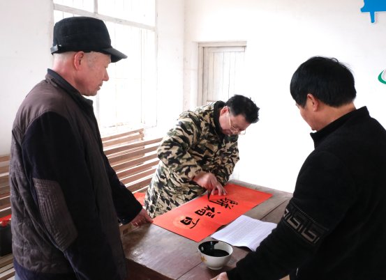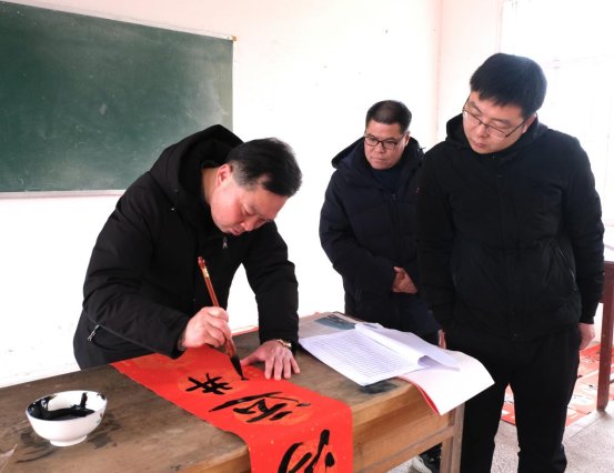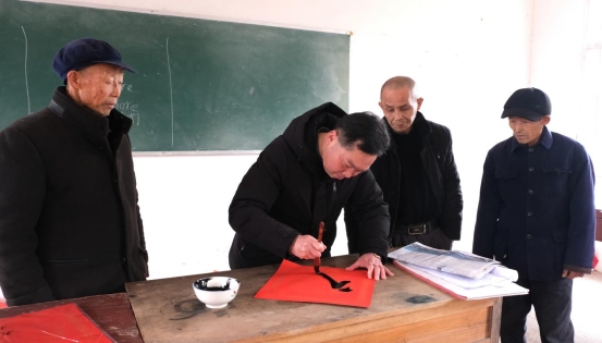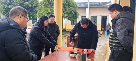 当天,在扒子岭村委,唐崇建带领县人社系统擅长书法的干部职工,为该村脱贫户等群众书写春联和“福”字,在新春佳节即将到来之际,为他们送去美好的新年祝福。