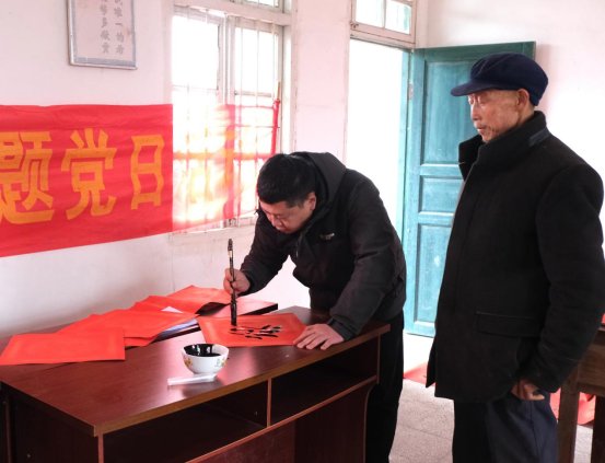 一对对春联,一个个“福”字,是群众对新年美好愿景的期待。“请帮我们写好,我们领了慰问品就来!”该村的几个脱贫户看了一时还领不到春联时,急切地交代着。