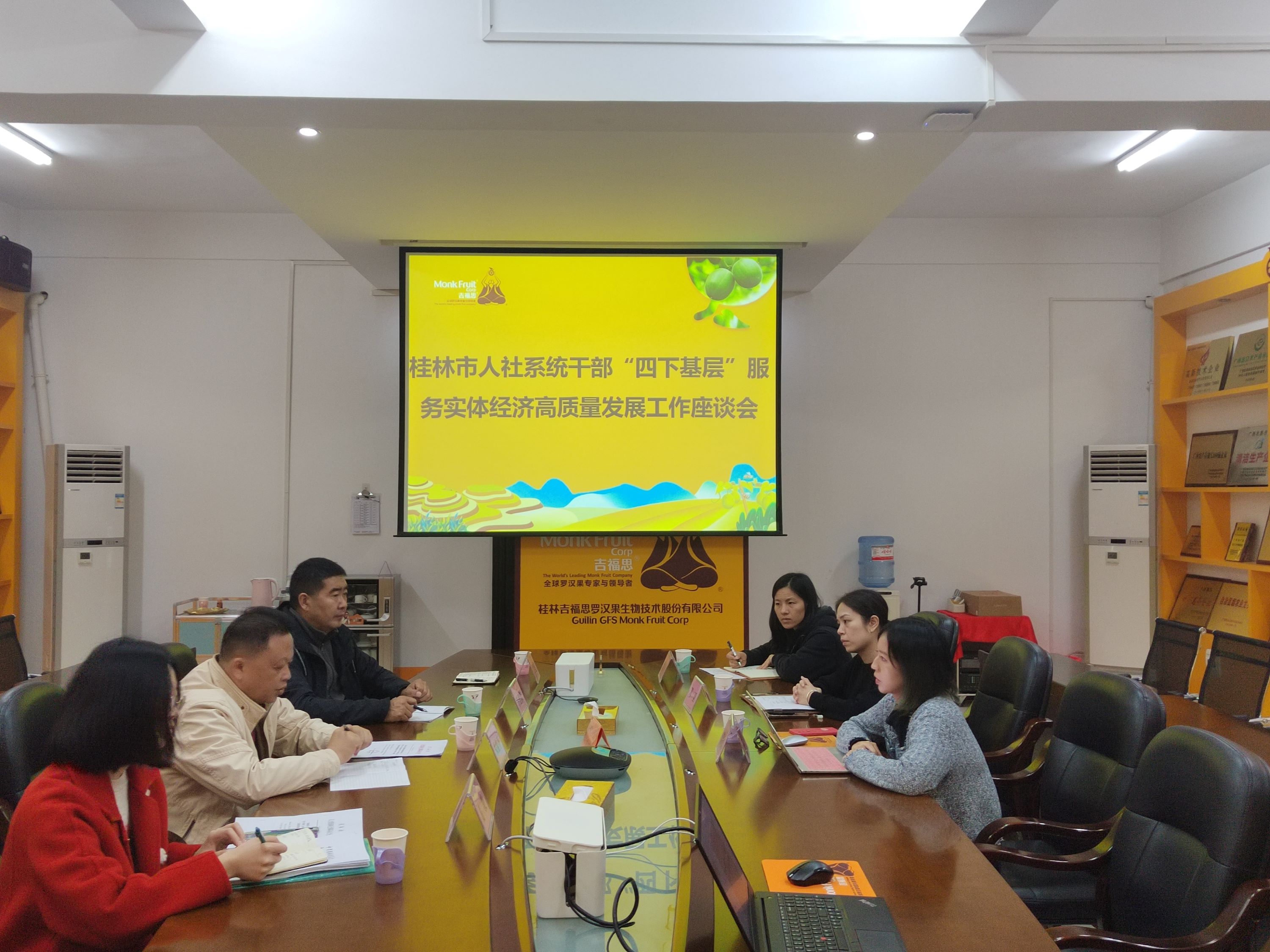 12月14日下午,桂林市人力资源和社会保障局党组成员、副局长朱桂平带队到桂林溢达纺织有限公司、桂林吉福思罗汉果生物技术股份有限公司开展“四下基层”服务企业调研工作。
