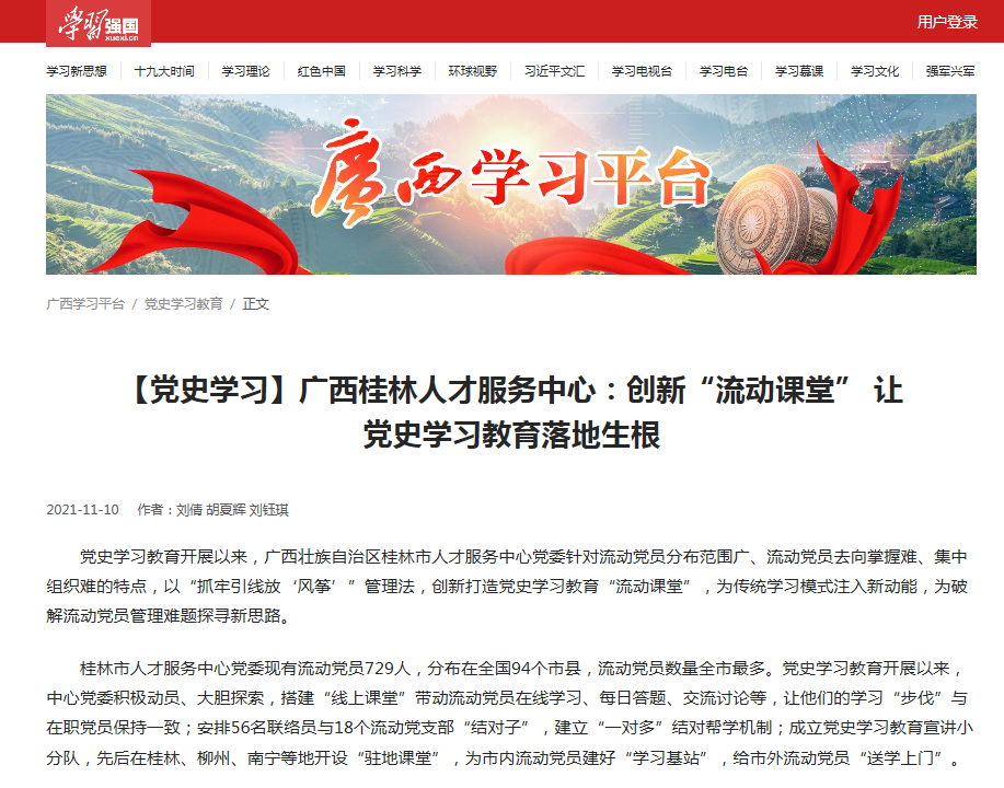 图1:在党史学习教育中的亮点、经验做法多次被学习强国广西平台报道