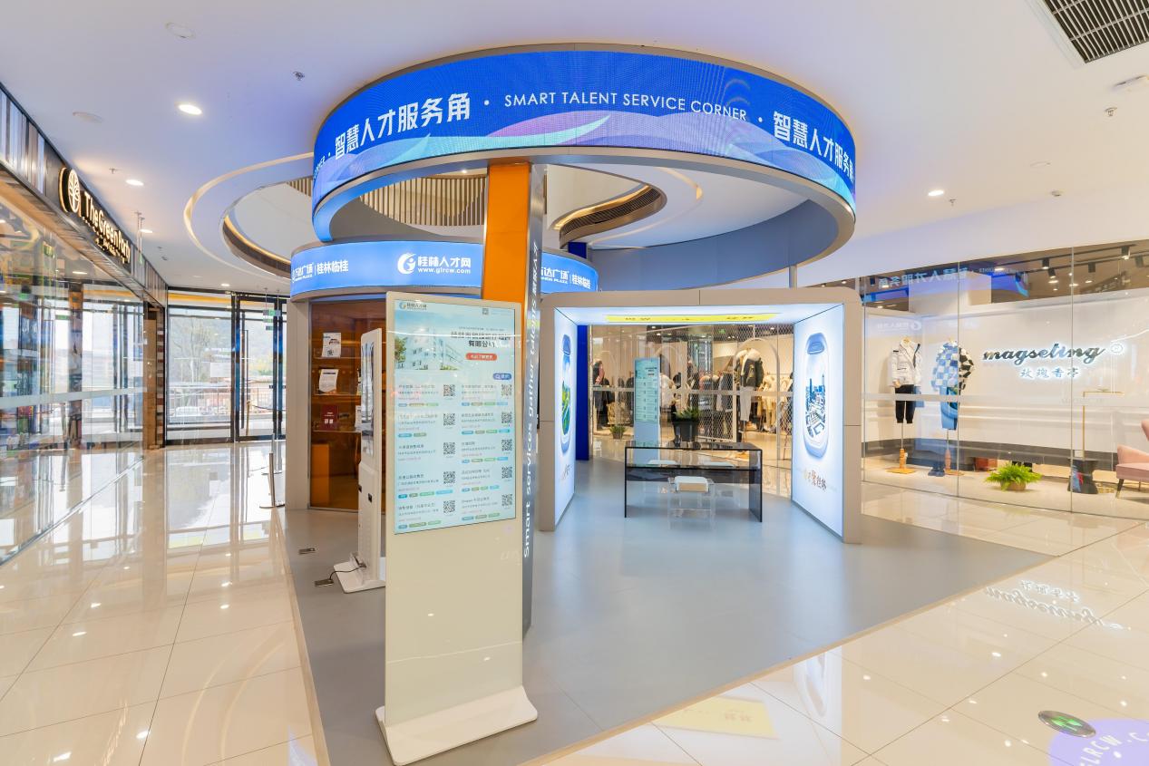 2021年12月,全国首推的商圈智能化人才服务角在桂林三大万达商场正式面向所有市民、游客免费开放。通过整合人才服务政策、人才就业信息等服务资源,为用人单位及个人提供政策信息“一键查询”、服务事项“一体申办”、人才活动“一站宣传”、就业招聘“一步对接”等多样化、智能化服务,实现公共服务与智慧商圈的深度衔接,打造沉浸式、体验式、交互式服务场景,开启了智能人才服务新方式。