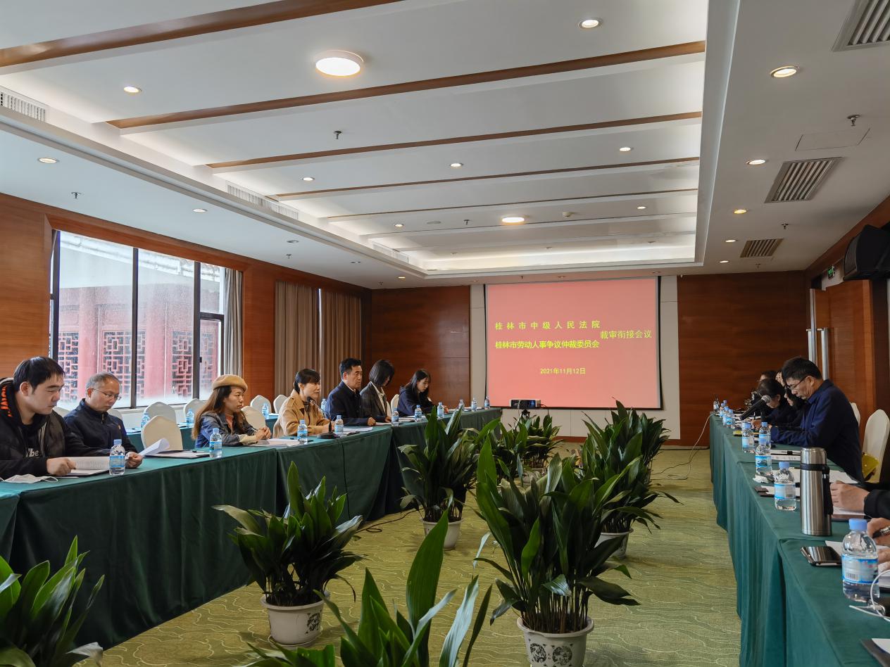 11月12日,桂林市劳动人事争议仲裁院党支部与桂林市中级人民法院民事审判第四庭党支部联合开展党建活动日,市人力资源社会保障局副局长苏骋、仲裁科科长王洪春、市中级法院民四庭庭长陈卉、市仲裁院院长黄成出席活动。当天,通过召开裁审衔接联席会、瞻仰烈士纪念碑缅怀革命先烈等系列活动,对全体党员进行党性锻炼教育,加强党员干部思想建设工作,统一劳动人事争议案件在劳动关系确认时效、失业保险待遇损失倍数、二倍工资计算基数等争议焦点上的裁审标准和尺度。经商讨,双方对处理劳动人事争议案件中存在争议的问题基本达成了共识,同时也分享和交流了办案经验。