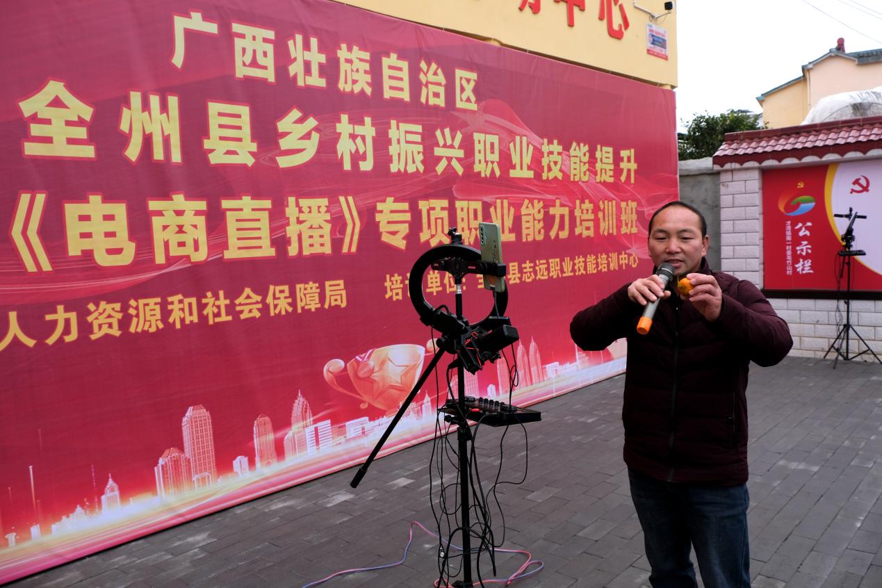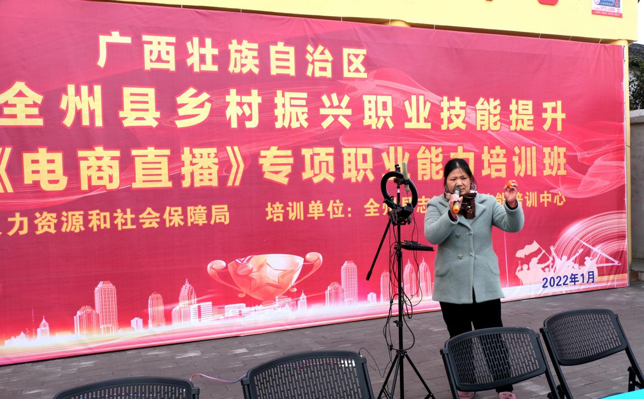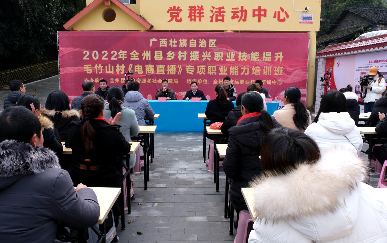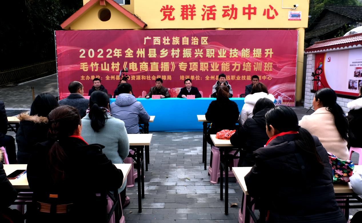 2022年1月13日,全州县“电商直播”专项职业能力培训在该县才湾镇毛竹山自然村举行。才湾镇南一村委50余名农民参加培训。这次活动由全州县人力资源和社会保障局主办、全州县志远职业技能培训中心承办,培训课程以熟悉直播设备安装、产品特性描述及多样化展示、产品促销方法和技巧、掌握订单售后流程为主要内容,着力培养农村电商人才,拓宽农民增收渠道,助力乡村振兴。