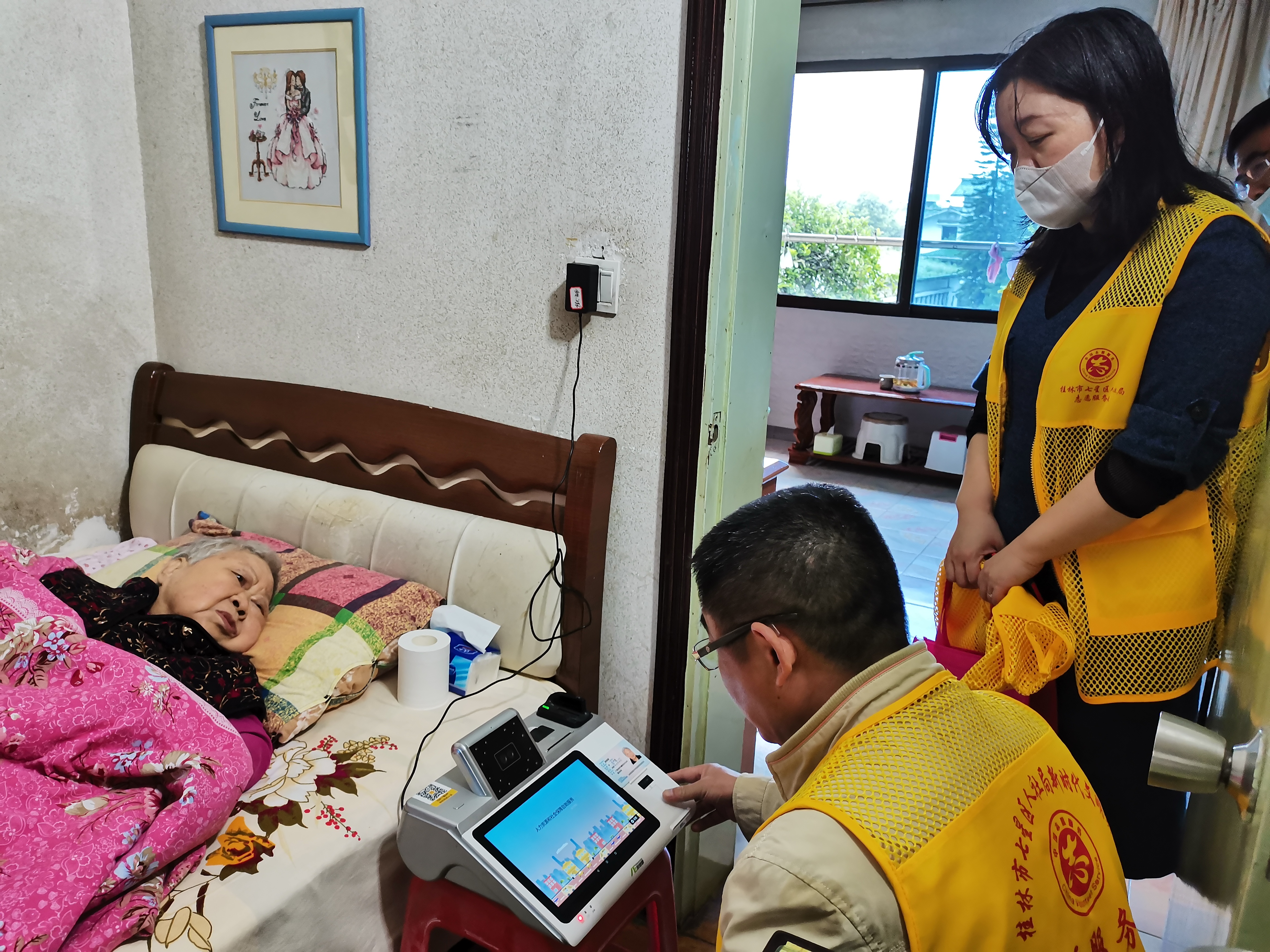 近日,为扎实开展“我为群众办实事”实践活动,七星区人社局局长兼社会中心主任卓志炳和社保中心副主任卫晓莹带领社保中心党员干部以“学党史、感党恩、我为群众办实事”为主题,结合上级进一步做好老年人关爱服务工作的要求,主动上门认证服务,全方位为老年人提供贴心暖心社保经办服务。