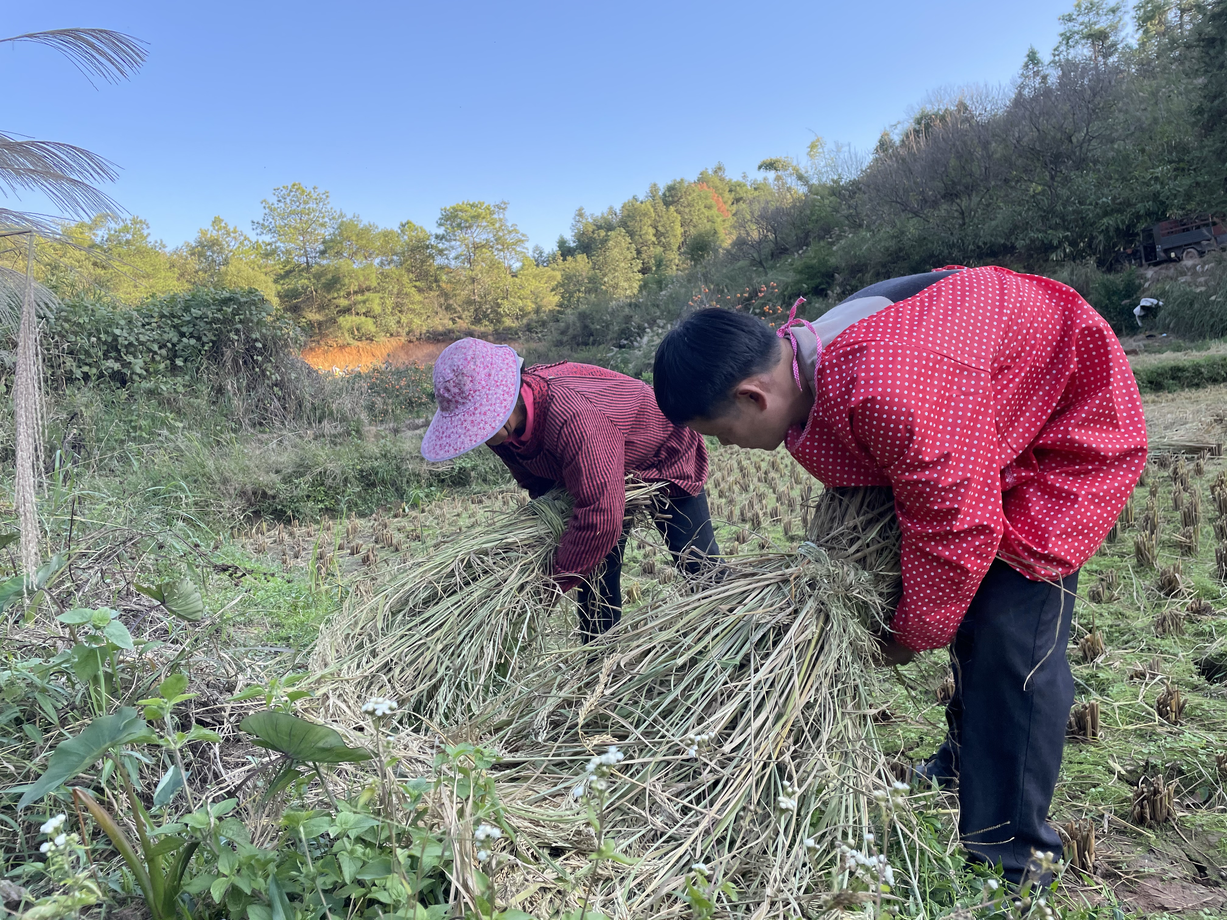 11月10日,在开展走访帮扶慰问过程中,发现渡雷村脱贫户蒋水生和支委委员蒋秋文两户家里,由于家中严重缺乏劳动力,同时又受到冷空气影响,水稻出现了倒伏现象,需要进行抢收。在了解到该农户的困难后,渡雷村村委蒋永江、第一书记黄家安联合驻村工作队员姚青平和王晨辉及驻村选调生胡茜蓉,在当日下午第一时间赶到田地现场,深入稻谷丰收第一线,帮助农户抢收稻谷,解其燃眉之急,克服人员不足的抢收难题。