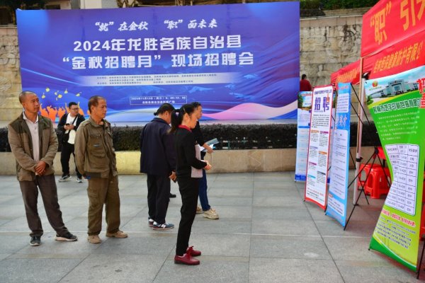 当天上午在民族广场还开展了2024年龙胜各族自治县“金秋招聘月”现场招聘会。据了解,招聘会参会企业43家、岗位达2500余个,涉及财务管理、市场营销、培训、金融、教育、旅游等多个领域,约1500余人入场应聘,线下初步达成就业意向300余人。当天的招聘进行了直播带岗活动,观众2300人次,线上共60人达成就业意向。 (蒙添泉)