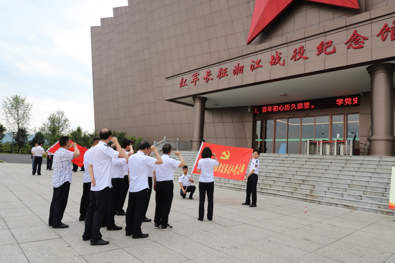 2021年5月10日,桂林市劳动和社会保障监察支队党支部党员和入党积极分子一行16人,来到桂林市全州县红军长征湘江战役纪念园参观学习,接受长征精神的洗礼。本次活动旨在深入贯彻习近平总书记关于深入开展党史学习教育重要指示精神,引导党员干部传承长征精神,感悟初心使命,发扬革命传统,汲取奋进力量。市人社局党组成员、副局长苏骋莅临活动并在现场为支队党员干部上了一堂严肃生动的党课。