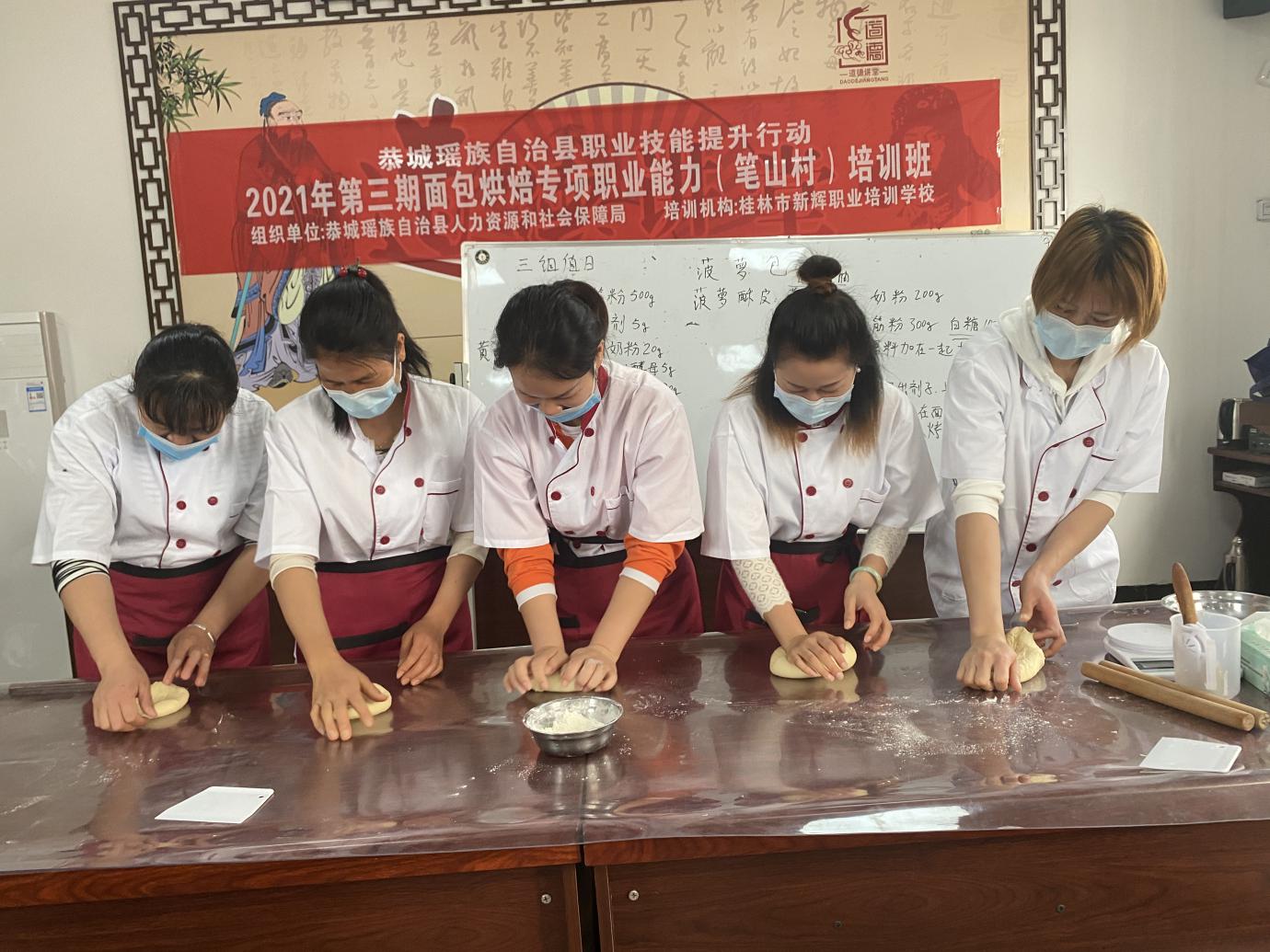 图为:恭城瑶族自治县在莲花镇笔山村举办面包烘焙培训班。