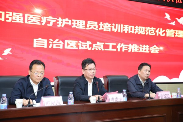 唐德华局长强调,各级各部门要深入贯彻习近平总书记2023年12月视察广西时提出“要办好‘一老一小’等民生实事和公共事务,着力解决好就业、教育、医疗、住房、养老、托幼等民生问题”的讲话精神,围绕精准满足人民群众多样化、多层次的健康需求,积极应对人口老龄化挑战,助力世界级旅游城市和健康桂林建设,不断增强全市人民的获得感、幸福感。自治区将开展加强医疗护理员培训和规范管理试点工作列入了2024年自治区人民政府为民办实事工程并写入政府工作报告,做好试点工作责任重大、使命光荣。一是要切实提高站位、深化认识,以高度的政治自觉增强做好医疗护理员培训和规范管理工作的使命感、责任感;二是要解放思想、创新求变,以一流的工作标准探索做好医疗护理员培训和规范管理工作的好方法、好路径;三是要锚定目标、砥砺奋进,以众志成城的精神面貌汇聚加强医疗护理员培训和规范管理工作的凝聚力、战斗力。