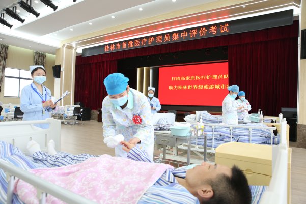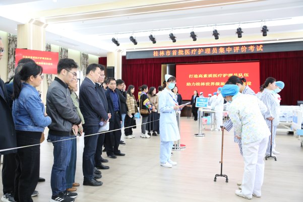 会前,参会人员分批次观摩了桂林市首批医疗护理员集中评价考试活动现场。