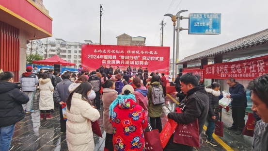 “我年纪有点大,请问可以应聘这个岗位吗?”“你们公司的待遇挺不错的,有五险一金吗?”“这么多公司现场招聘,有适合宝妈的工作吗?”……临近春节,为了让就业困难人员早就业、就好业,灌阳县人力资源和社会保障局联合县委组织部、农业农村局、卫生健康局、总工会、共青团、妇联、残联等部门,共同举办“春风送岗促就业.精准服务助发展”——2024年灌阳县“春风行动”启动仪式暨就业援助月现场招聘活动,为群众提供温暖的就业服务。